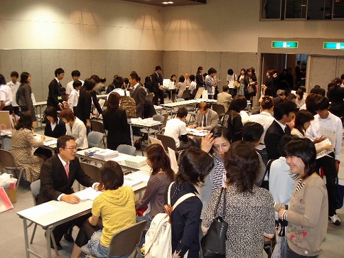 合同進学説明会の様子です。 北摂地域の公立高校、私立高校の先生方に集まっていただき、ブース形式で個別に保護者、生徒と話していただきました。皆さんの熱気が伝わってきます。